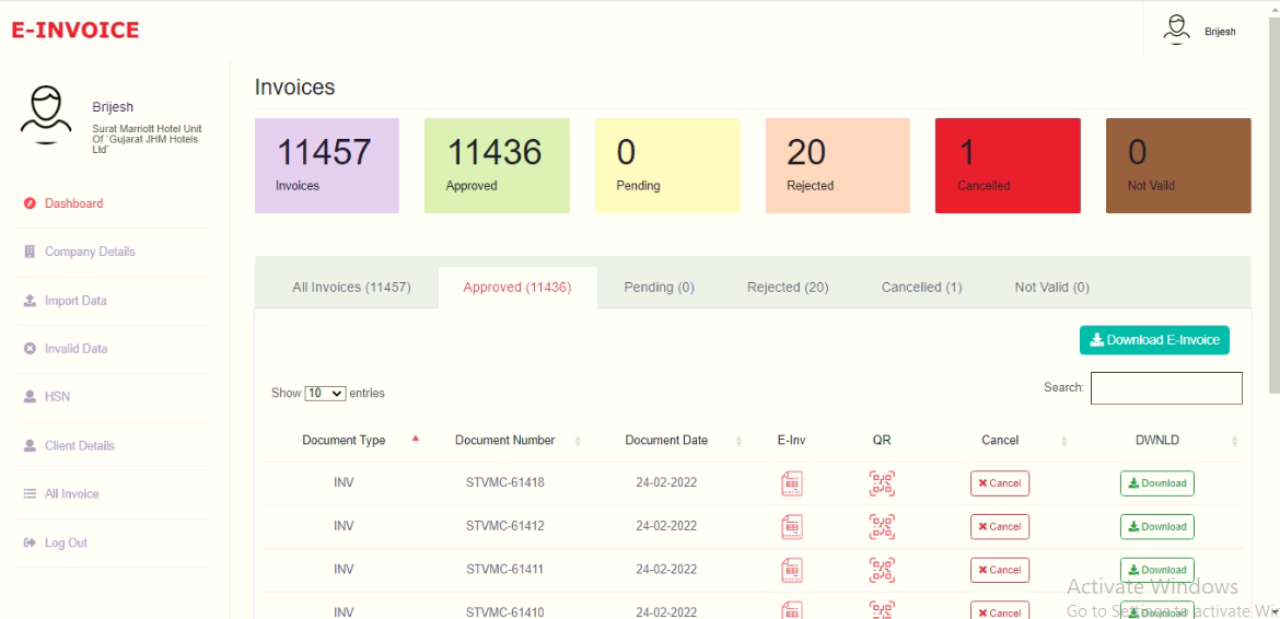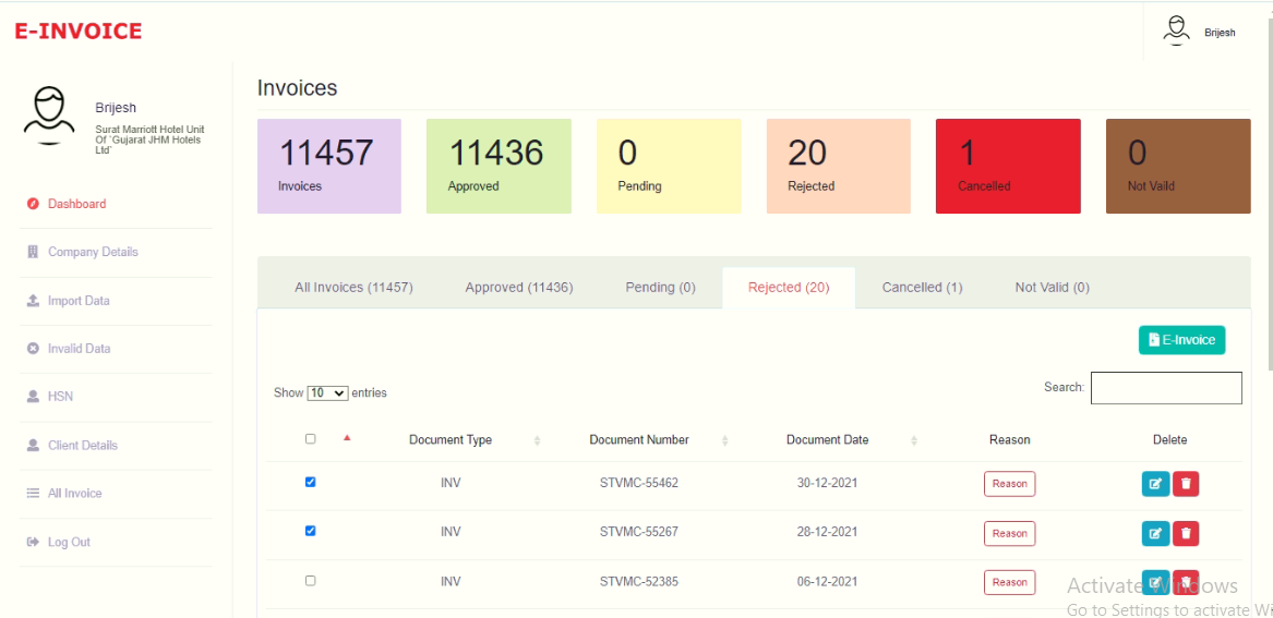 e-Invoice is a system in which B2B invoices are authenticated electronically by GSTN for further use on the common GST portal. Under the electronic invoicing system, an identification number will be issued against every invoice by the Invoice Registration Portal (IRP) to be managed by the GST Network (GSTN).